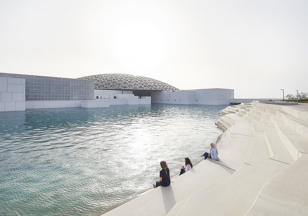 Im Gegensatz zum Pariser Pendant hat der französische Stararchitekt Jean Nouvel anstatt der gläsernen Pyramide ein 180 Meter breites Kuppeldach erbaut. Darunter befindet sich eine Museumsstadt im Stil einer arabischen „Medina“. Die Konstruktion aus unzähligen Metallsternen, die in ein komplexes geometrisches Muster verstrickt sind, erzeugt durch das einfallende Sonnenlicht einen faszinierenden „Lichtregen“. Dieser erinnert gewollt an den Schattenwurf von Palmen in arabischen Oasen.