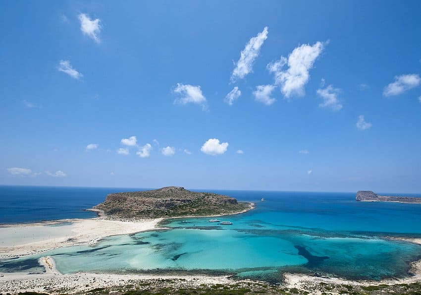 Der Balos Beach im Nordwesten Kretas erwartet Sie mit traumhaftem Karibikflair. Zwischen der Küste und der vorgelagerten Felsinsel Cap Tigani befindet sich eine Sandbank, die zu beiden Seiten von türkisblauem Wasser umgeben ist. Den Balos Beach erreichen Sie am einfachsten mit der Fähre von Kissamos aus.