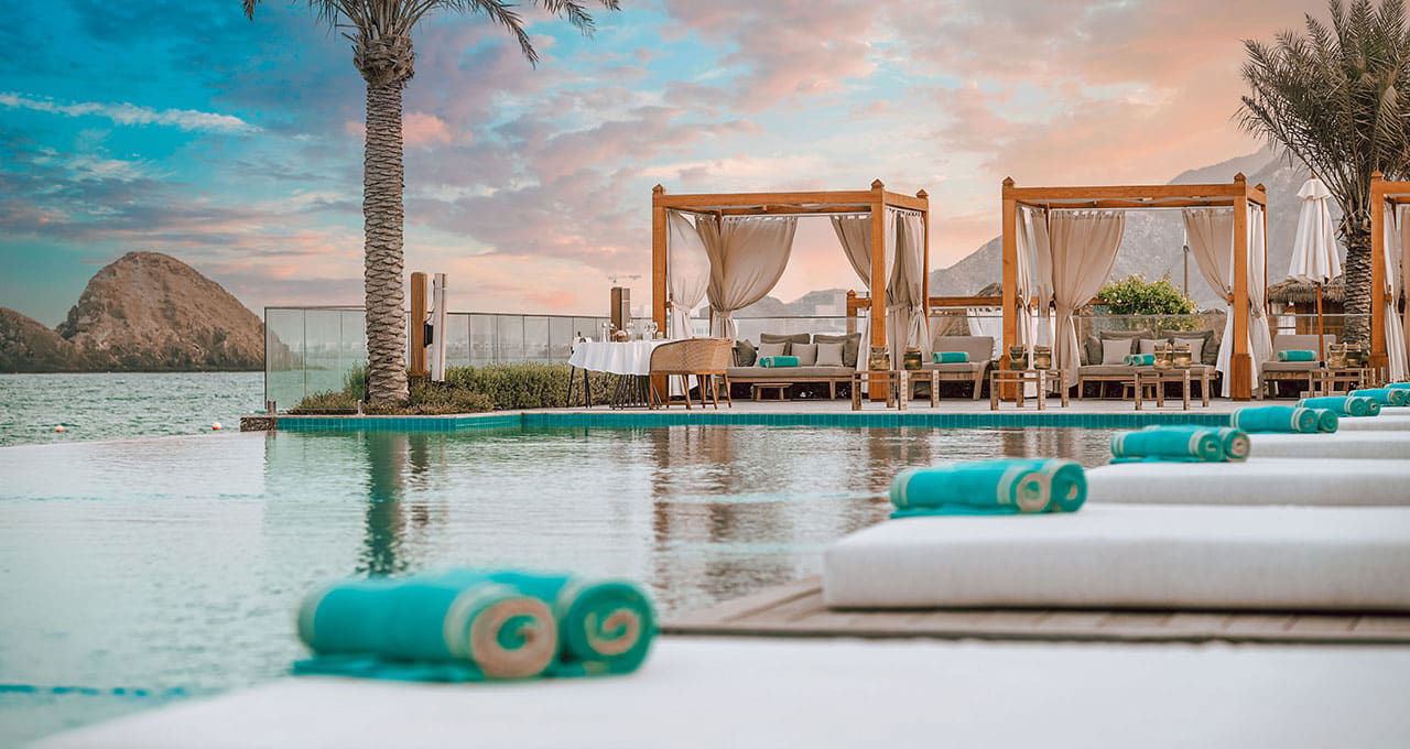 Beste Erholung im Emirat Fujairah: Im Naäma Beach Villas & Spa genießen Sie puren Luxus in privaten Poolvillen mit 24 Stunden Butler-Service. Die Wohnhäuser bieten Ihnen mindestens 325 Quadratmeter Platz und zählen damit zu den größten privaten Luxusvillen in den VAE. Zeitlose und natürliche Einrichtungselemente schmücken das Innere der Zimmer, während sich das Spa an einem ganzheitlichen Wellnessansatz bedient. Zwischen malerischem Sandstrand und Hajar-Gebirge genießen Sie eine idyllische Lage – perfekt für Ausflüge in die beeindruckende Natur. Unbeschreiblicher Luxus mit höchstmöglicher Privatsphäre und beispielloser Ruhe – ein wahres Ausnahmehotel!