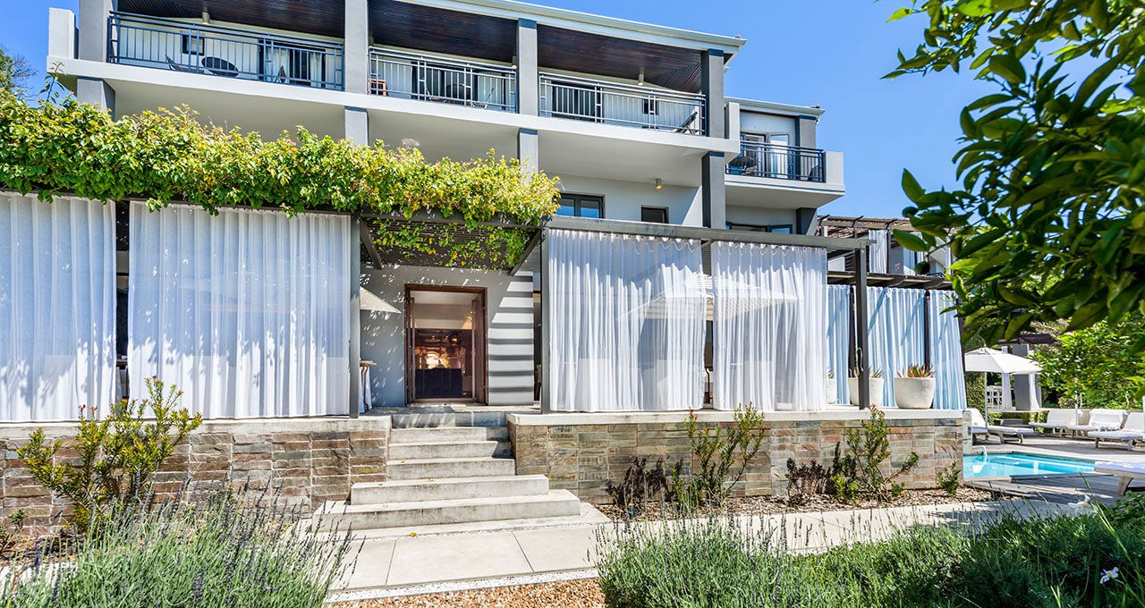 Kunstwerken von südafrikanischen Künstlern zieren die Wände. Alle Zimmer verfügen über TV, DVD-Player, Telefon, IT-Port, Klimaanlage, Safe sowie private Terrasse oder Veranda. Zum Gästeservice des Hotels gehören unter anderem: 24-Stunden-Zimmerservice, DVD- und Musikbücherei, kostenloser Internetanschluss (Laptop steht in allen Zimmern zur Verfügung), Wäscheservice sowie Strandtaschen- und Handtuchverleih.
