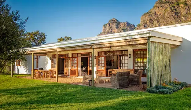 Wohnen Sie in restaurierten historischen Landhäusern, die mit klassisch-moderner Einrichtung in die herrliche Umgebung integriert sind. Im Boschendal wartet ein luxuriöser, vielseitiger und genussvoller Bauernhof-Urlaub auf Sie