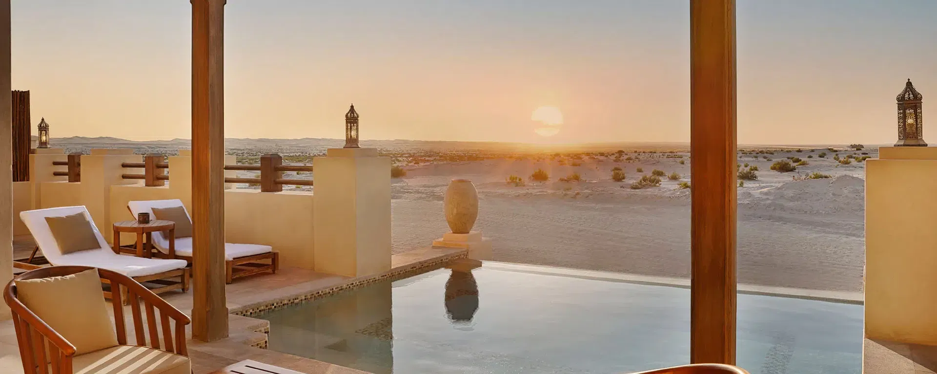 - Al Mesayan Rooftop Bar mit Blick auf die Wüste