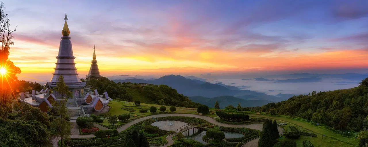 Chiang Mais liebevoller Spitzname „Rose des Nordens“ verspricht nicht zu viel: Die üppigen, blühenden Landschaften der Region sind einfach atemberaubend. Am eindrucksvollsten lässt sich die ursprüngliche Natur beim Trekking oder frei lebende Elefanten erkunden. Entlang von Reisfeldern oder durch dichte Urwälder geht es zu verborgenen Dörfern, in denen Bergvölker ihren traditionellen Lebensstil beibehalten haben. Wer es weniger abenteuerlich mag, findet in Chiang Mai eine perfekte Infrastruktur mit kulinarischen Genüssen, rund 200 Tempeln und charmanten Boutique-Hotels, Natur-Resorts und Luxushotels.