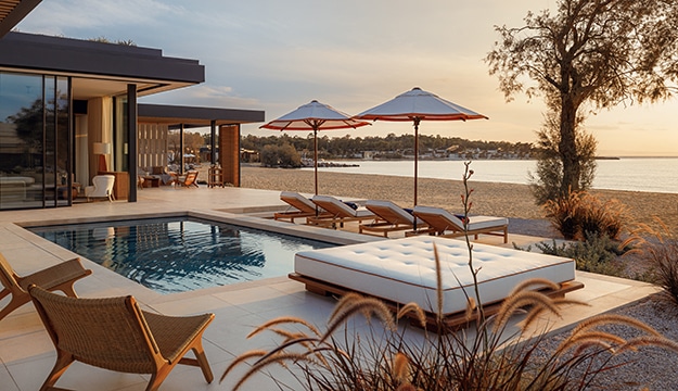 Das 91 Athens Riviera verfügt über lediglich 28 luxuriöse Glamping-Zelte, alle davon mit En-suite-Badezimmer. Hier erwarten Gäste ein geräumiges Interieur und eine große Terrasse, wahlweise mit Pool. In gewohnter Manier der Hotelgruppe Domes sind die kuppelförmigen Zelte kunstvoll-modern eingerichtet – die großen Fensterfronten blicken zum Garten oder zum Lagunenpool der Anlage.