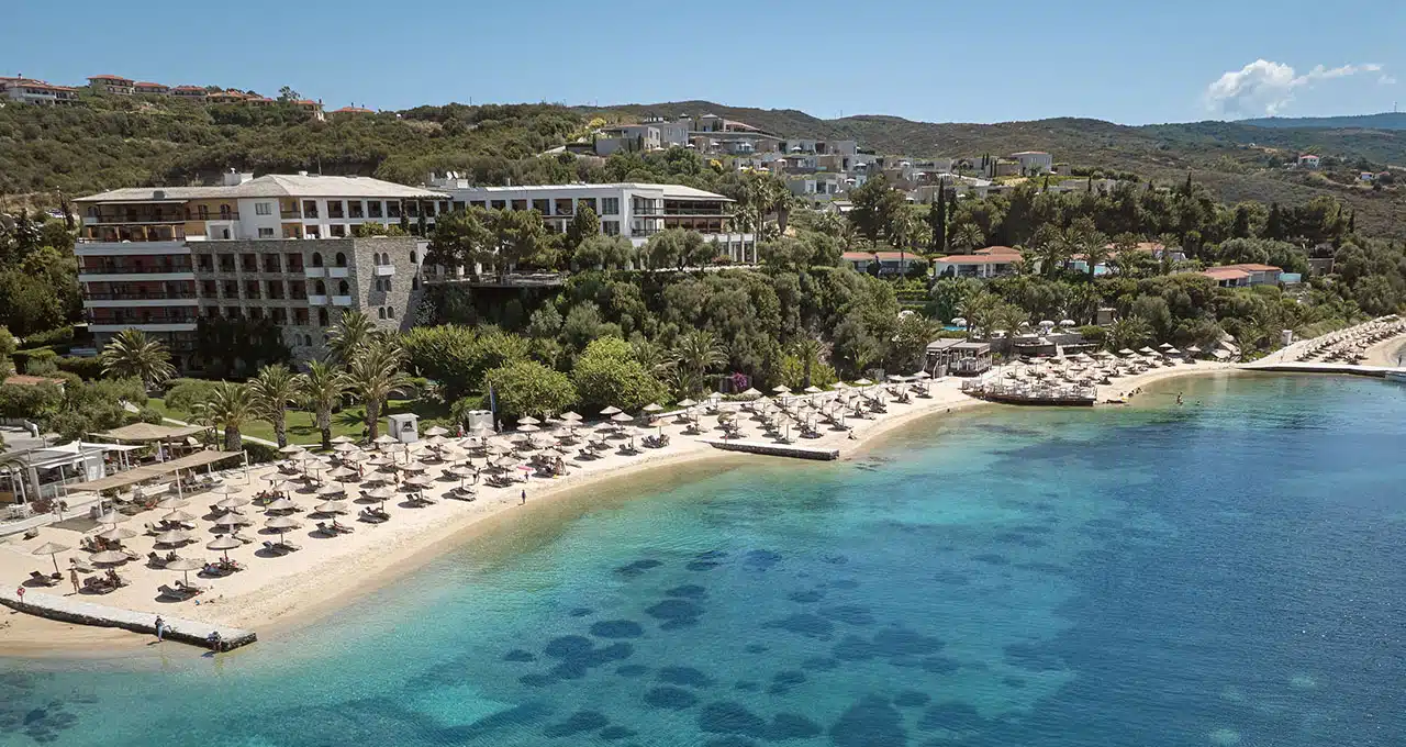 Der dritte Chalkidiki-Finger ist vor allem bekannt durch den heiligen Berg Athos mit seinen bekannten und imposanten Felsenklöstern. Ganz in der Nähe liegt das Eagles Palace und ist somit idealer Ausgangspunkt für Ausflüge und Aktivitäten auf der noch recht ursprünglichen Halbinsel. Ein Abstecher in das kleine und nur knapp fünf Kilometer entfernte Fischerdorf Ouranouplis lohnt sich. Der Flughafen Thessaloniki ist in etwa 113 Kilometern erreichbar und der Flughafen Kavala liegt ca. 175 Kilometer entfernt.