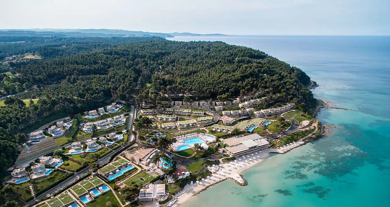 Auf dem ersten „Finger“ der Halbinsel Chalkidiki Kassandra erreichen Sie das charmant gelegene Sani Club Hotel in ca. 50 Minuten bei 73 Kilometern nach der Ankunft am Flughafen Thessaloniki. Das Besondere an diesem familiären Hotel ist die etwas abseits von der Sani Marina gebaute Anlage mitten in den Pinienwäldern. Somit bietet sich viel Ruhe und dennoch ein nur kurzer Weg zu den Schwesterhotels mit den vielen Restaurants, Bars und Geschäften.