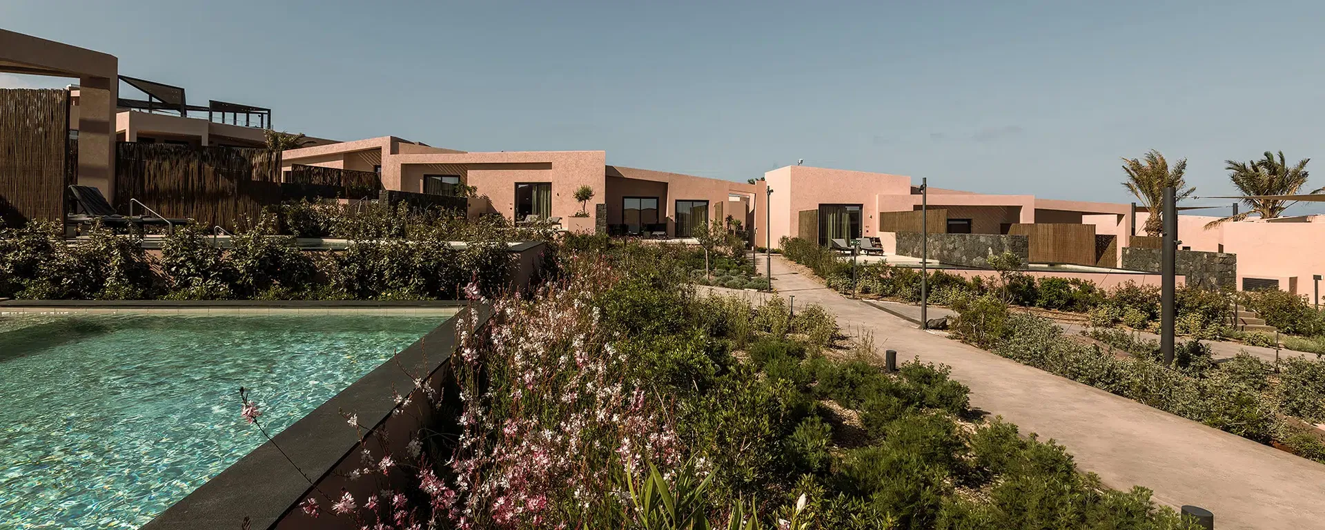 Ruhig, aber nicht weit entfernt vom Hotspot der Insel: Das Domes Novos Santorini ist das perfekte 5-Sterne-Lifestyle-Resort für einen entspannten Santorin-Urlaub.
