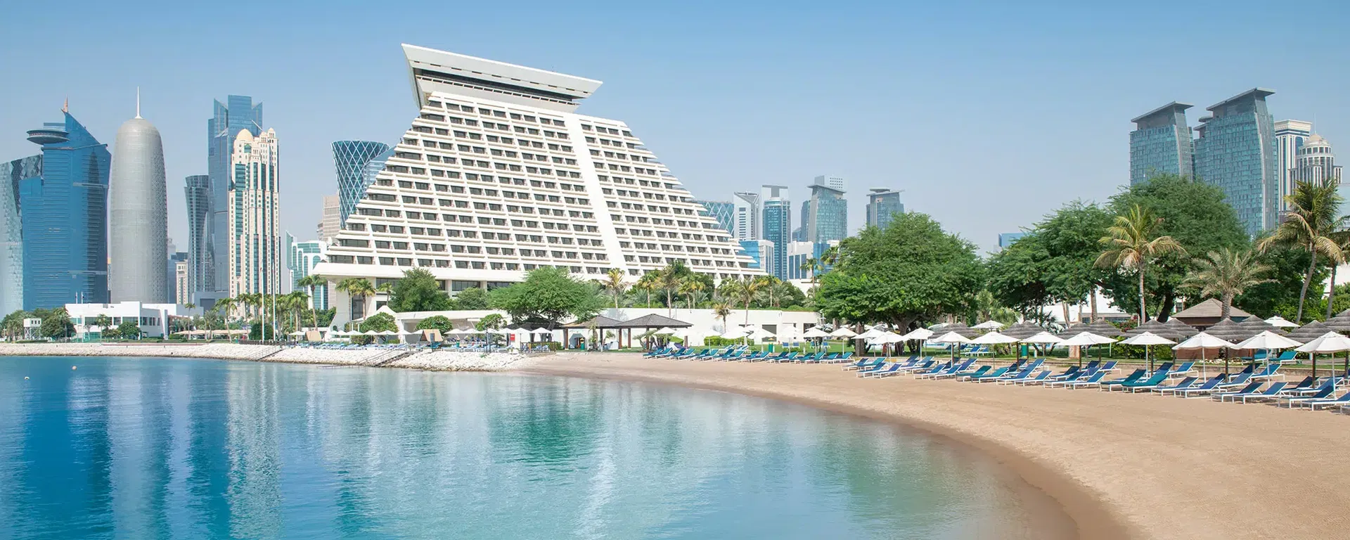 Das Sheraton Grand Doha Resort & Convention Hotel erhebt sich als historische Koryphäe der Hotellandschaft Dohas über der Stadt – so war es bereits 1982 die erste große internationale Hotelanlage in Doha und ein architektonisches Symbol für Modernisierung und Wachstum Katars. Im markant modernistischen Stil thront die ikonische Pyramide weit sichtbar an der Küste. Hier erwartet Gäste ein rundum gelungenes Hotelkonzept: Von komfortablen Zimmern und Suiten über prämierte Küche zum herzlichen, einladenden Ambiente stimmt einfach alles. Das gute Preis-Leistungs-Verhältnis – wie für Katar üblich – dürfte für Viele das Sahnehäubchen darstellen. Ein empfehlenswertes und hervorragend angebundenes Stadthotel direkt am Strand!