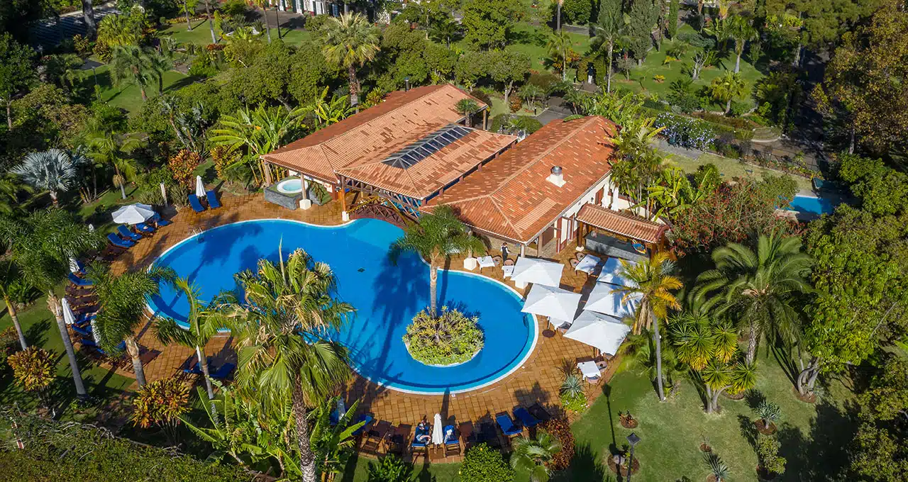 An der Südküste Madeiras begrüßt das geschichtsträchtige Traditionshaus Quinta Jardins do Lago seine Gäste mit inseltypischer Architektur, subtropischem Garten und uneingeschränktem Komfort. Bei einer jüngeren Renovierung wurde besonderer Wert auf die Erhaltung der ursprünglichen Bauform und antiken Innenausstattung gelegt. Unterstrichen wird das gediegene Hotel-Ambiente durch die ansprechende Lage in den Hügeln der belebten Inselhauptstadt Funchal. Diese richtet den Blick auf den türkisblauen Atlantik und garantiert gleichzeitig ein abwechslungsreiches Freizeitprogramm. Beispielsweise sind der Hafen und die historische Altstadt mit dem Auto in weniger als zehn Minuten zu erreichen. Die Organisation spannender Besichtigungen, darunter die der Monte Palace Gärten oder des Santa Clara Klosters, wird auf Wunsch durch das engagierte Hotelpersonal unterstützt. Unkompliziert gestaltet sich auch der Transfer zum Flughafen Funchal, der etwa zwanzig Minuten benötigt.