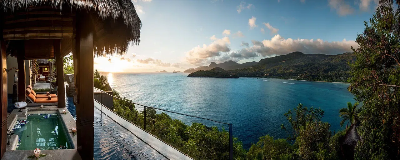 Tropisches Inselglück: Das Boutique-Hotel Anantara Maia Seychelles Villas liegt auf einer privaten Halbinsel auf Mahé. Die idyllische Anlage mit nur 30 Poolvillen überzeugt mit einem sehr exklusiven Flair und Gastronomie sowie Wellness auf Top-Niveau. Die geräumigen Unterkünfte wurden vom weltberühmten Designer Bill Bensley gestaltet. In atmosphärischer Hanglage oder direkt am Strand profitieren Sie von viel Platz, Ihrem eigenen Butler und einmaliger Privatsphäre.