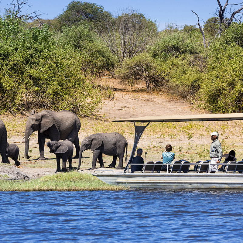 Im Chobe Nationalpark, im Norden des Landes, erwartet Sie hingegen das andere Gesicht Botswanas: weite Savannen, mächtige Baobab-Bäume und eine der größten Elefantenpopulationen Afrikas. Tierbeobachtungen entlang des Chobe-Flusses gehören zu den eindrucksvollsten Erlebnissen einer Botswana Safari. Besonders bei Sonnenuntergang verwandelt sich der Himmel in ein leuchtendes Farbenmeer – ein unvergesslicher Moment.