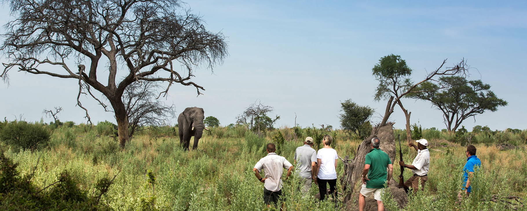 Eine Begegnung mit Botswanas Riesen ist doppelt so intensiv, wenn Sie die Tiere aus nächster Nähe zu Fuß sehen. Zudem nehmen Sie die Details der Savanne bewusster wahr – aus nächster Nähe und ohne die Geräuschkulisse eines Geländewagens. Pirschen Sie sich an und lauschen Sie der Wildnis!