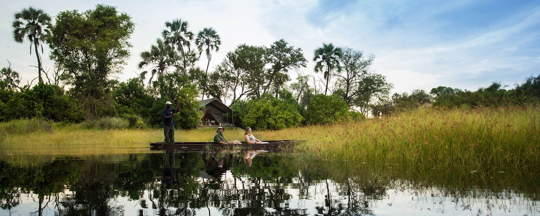 Mitten im Feuchtgebiet des Okavango-Deltas erwartet Sie eine einmalige Safari-Lodge auf unserer Botswana-Rundreise. Das neue Monachira Camp bietet Ihnen einmaligen Luxus in einer entlegenen Region des Okavango-Deltas. Hier haben Sie ganzjährig die Gelegenheit zu einer Motorboot- oder Kanu-Safari, da der Wasserstand über das Jahr hinweg hoch genug bleibt – auch Pirschfahrten im Geländewagen mit maximal sechs Gästen und Wanderungen werden angeboten.