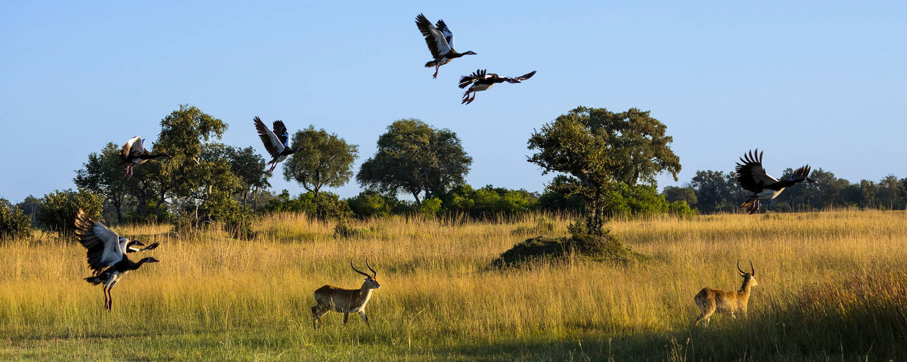 Nach einem frühen Frühstück beginnen Sie Ihre Tage mit der ersten Safari. Ob Fahrt im Geländewagen, Wanderung oder Bootsfahrt – lassen Sie sich überraschen! Das Personal wählt in Absprache mit Ihnen die beste Möglichkeit, um die eindrucksvolle Tierwelt zu beobachten. Je nach Wasserstand ist eine Bootsfahrt nicht möglich; diese werden voraussichtlich zwischen April und Oktober durchgeführt. Zu Ihrer Rückkehr wird im Camp ein Brunch und nach etwas Pause später ein Nachmittags-Tee mit Snacks serviert, bevor Sie zur zweiten Safari des Tages aufbrechen.