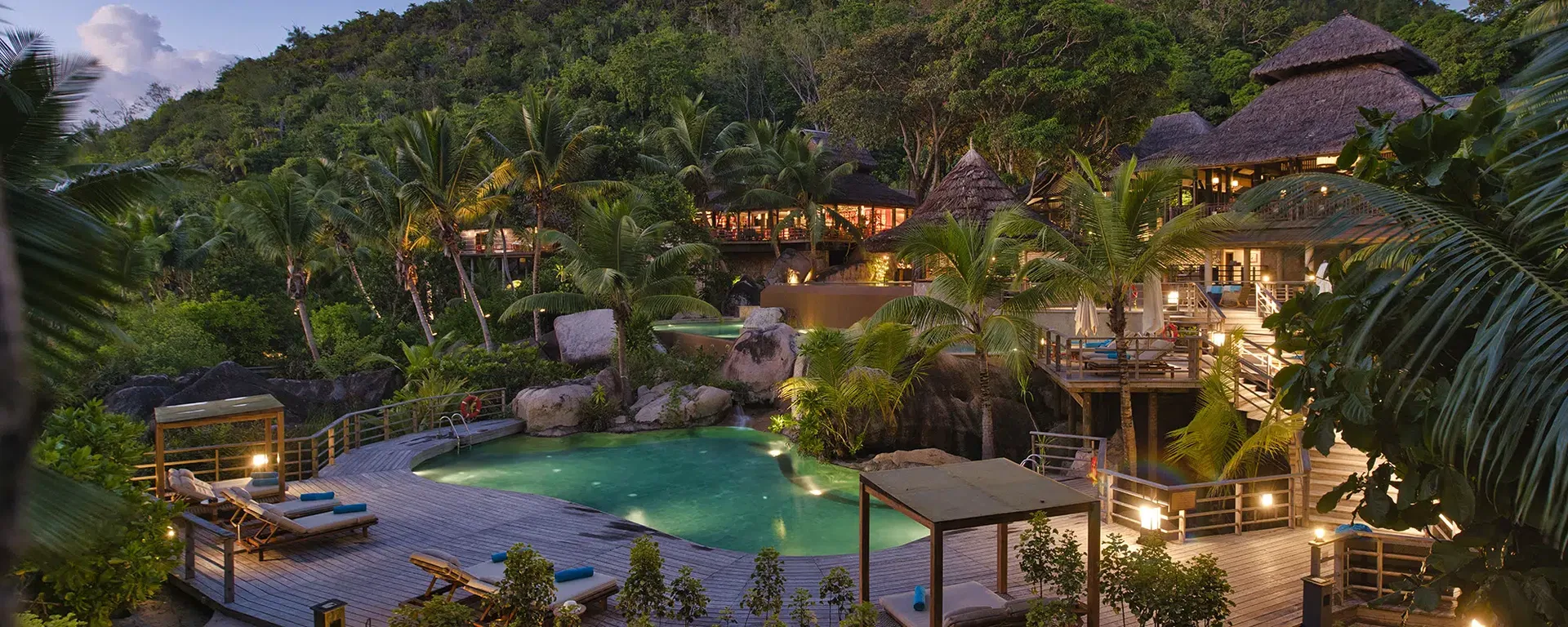 Die acht Pool-Villen sind am südlichen Ende der Anse Kerlan gelegen und verfügen über ein oder zwei Schlafzimmer.
